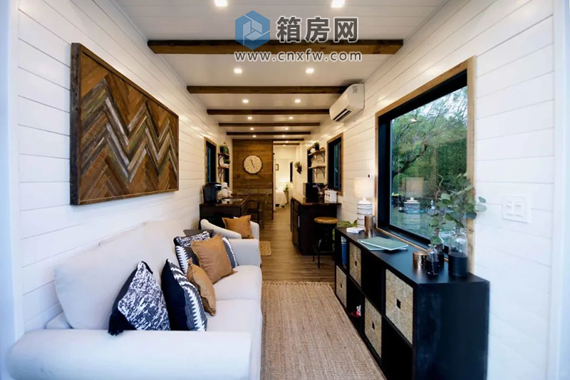 集裝箱住宅建設(shè)實(shí)際上與標(biāo)準(zhǔn)住宅建設(shè)完全不同,當(dāng)構(gòu)建一個(gè)標(biāo)準(zhǔn)的房子時(shí),更多的考慮在結(jié)構(gòu)方面。然而,這些集裝箱可以裝載40噸的貨物,并且可以堆到9層高,所以它們已經(jīng)非常堅(jiān)固了。在內(nèi)部,你基本上只是在一個(gè)外殼中構(gòu)建一個(gè)外殼,主要關(guān)注隱藏實(shí)用元素,并提供一個(gè)結(jié)構(gòu)來(lái)應(yīng)用墻面裝飾。