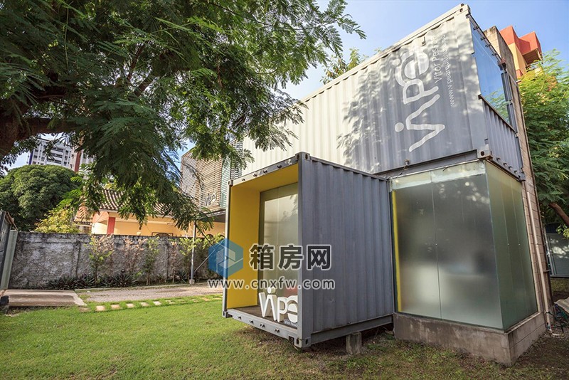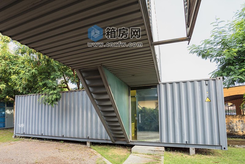 該集裝箱辦公室租用土地450平方米,由40英尺的集裝箱構建而成。由于土地是租來的,采用集裝箱結構,方便移除和重新組建。
