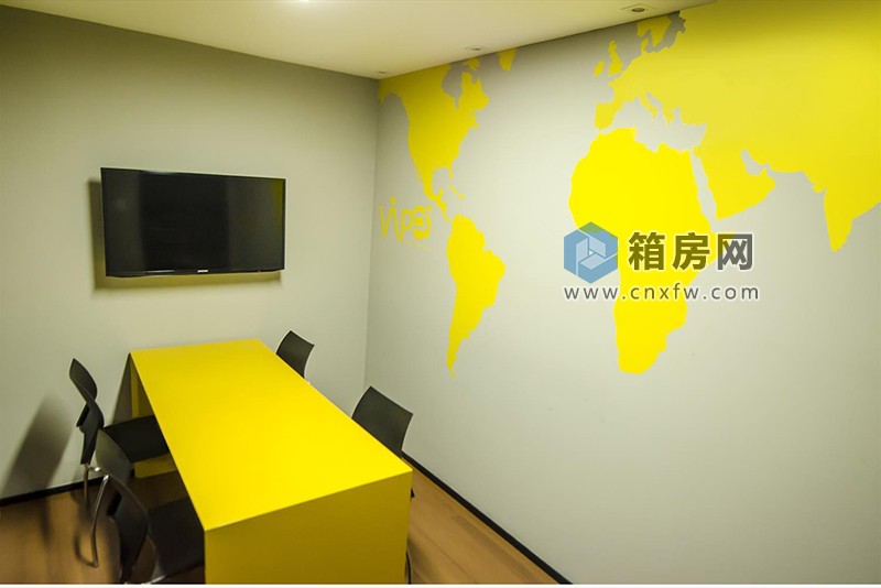 室內設計,采用了一種極簡主義光學理念。所有的家具都是用黃色和白色制作,鮮明光亮,同時呼應公司的Logo。墻上貼的是項目相關圖片,比如草圖和技術圖紙。在會議室里,便是鮮明的黃色會議桌與世界地圖貼紙。