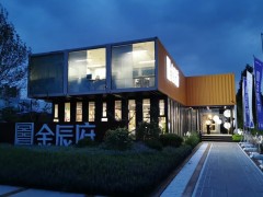 這是由兩個超寬的40尺箱體、兩個標(biāo)準(zhǔn)的40尺箱體以及鋼架構(gòu)組合搭建而成,一只超寬箱體以及一只標(biāo)準(zhǔn)箱前后安放拼接組成一個整體,兩組拼接箱體分別放置在兩旁,中[查看詳情]