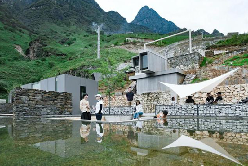 位于云南省香格里拉市的虎跳峽,是世界最深的峽谷之一,長(zhǎng)約16公里,上下落差200米。在過(guò)去的40年中,這條峽谷的徒步路線(xiàn),已享譽(yù)全世界。13年前,昆明人王猛帶著未婚妻來(lái)到了這里,雖然玩得很開(kāi)心,但對(duì)于一個(gè)沒(méi)有任何徒步經(jīng)驗(yàn)的都市女孩來(lái)說(shuō),她很難適應(yīng)背包客棧的住宿條件,一晚上都沒(méi)休息好。當(dāng)時(shí),王猛玩笑地對(duì)未婚妻說(shuō):“未來(lái),我一定在這里給你造一個(gè)舒服的房子。”2020年8月,王猛如愿帶著太太來(lái)到了同樣的地方,住進(jìn)了自己親手造的酒店里。