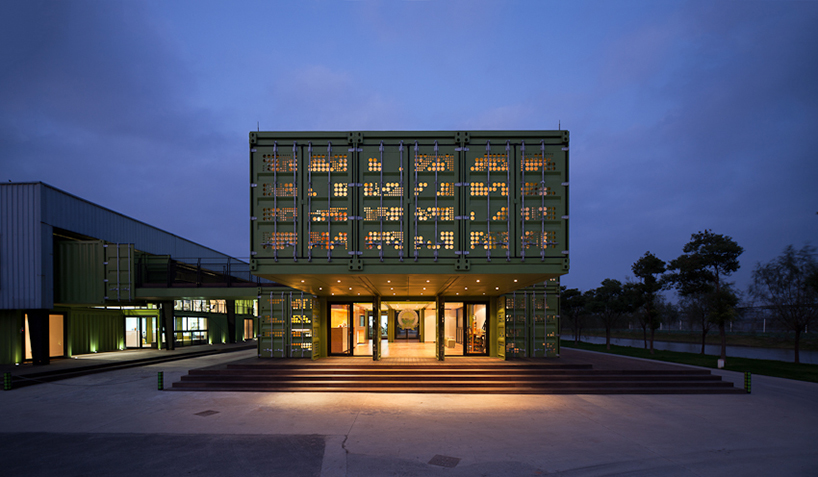 上海多利農(nóng)莊的這棟建筑將接待、門廳、VIP、辦公和食品包裝等功能整合在一起。建筑采用集裝箱建設(shè),集裝箱的不規(guī)則布置模式適應(yīng)各種需求并創(chuàng)造豐富空間,設(shè)計(jì)和建造過程植入的各項(xiàng)環(huán)保措施使項(xiàng)目成為了一座真正的具有可持續(xù)性的建筑。在多利農(nóng)莊的發(fā)展藍(lán)圖中,成為一個(gè)蔬菜生產(chǎn)基地不只是她的全部目標(biāo),這里將建設(shè)為上海一處引領(lǐng)自然生活方式的新地標(biāo)為了將室內(nèi)外的不同功能在實(shí)際使用上和視覺上建立一定的聯(lián)系,建筑設(shè)計(jì)為一個(gè)連續(xù)的空間序列,當(dāng)參觀者穿行于建筑和場(chǎng)地時(shí),空間序列的發(fā)展邏輯不易被察覺,這需要參觀者自己去體驗(yàn)并發(fā)現(xiàn)。