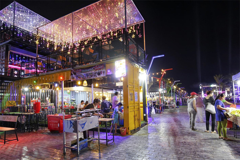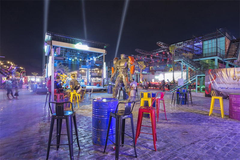 盡管集裝箱市場需要具有多元化特色的設計感,但許多的城市都擁有屬于自己的標志性集裝箱市場,就比如這個名叫【Palm Container Night Market】的特色夜市商業街。目前,該商業街共有120個租戶商店,該公司希望將來將其增加到約300個。它分為高棉美食,泰國美食,海鮮,燒烤和咖啡廳等餐廳區域,以及服裝,配飾,箱包,紀念品和便利店等商店區域。