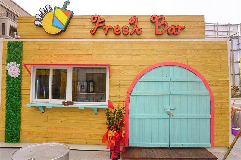 【Fresh Bar】鮮果吧,以大地色系為主的迷你城堡,最重要是它比較有特色,外觀看上去不像是貨柜箱,實(shí)際上是用木板搭配上一些裝飾,包裹著集裝箱,讓整個商鋪給人一種仿佛置身于童話式的城堡中。室內(nèi)充滿著綠色的元素,享受食物之余還能感受著這種綠色的氣氛。