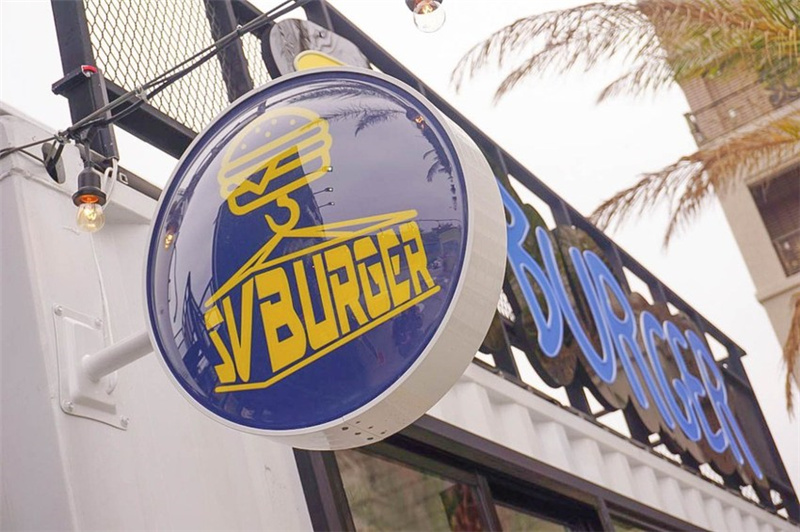 【SV Burger】美式漢堡店,店內(nèi)主要用整塊原肉來制作漢堡。白色與黑色的色調(diào)結(jié)合,盡顯工業(yè)風(fēng)。二樓設(shè)有戶外平臺和休息室,給游客提供一個悠閑享受的空間。