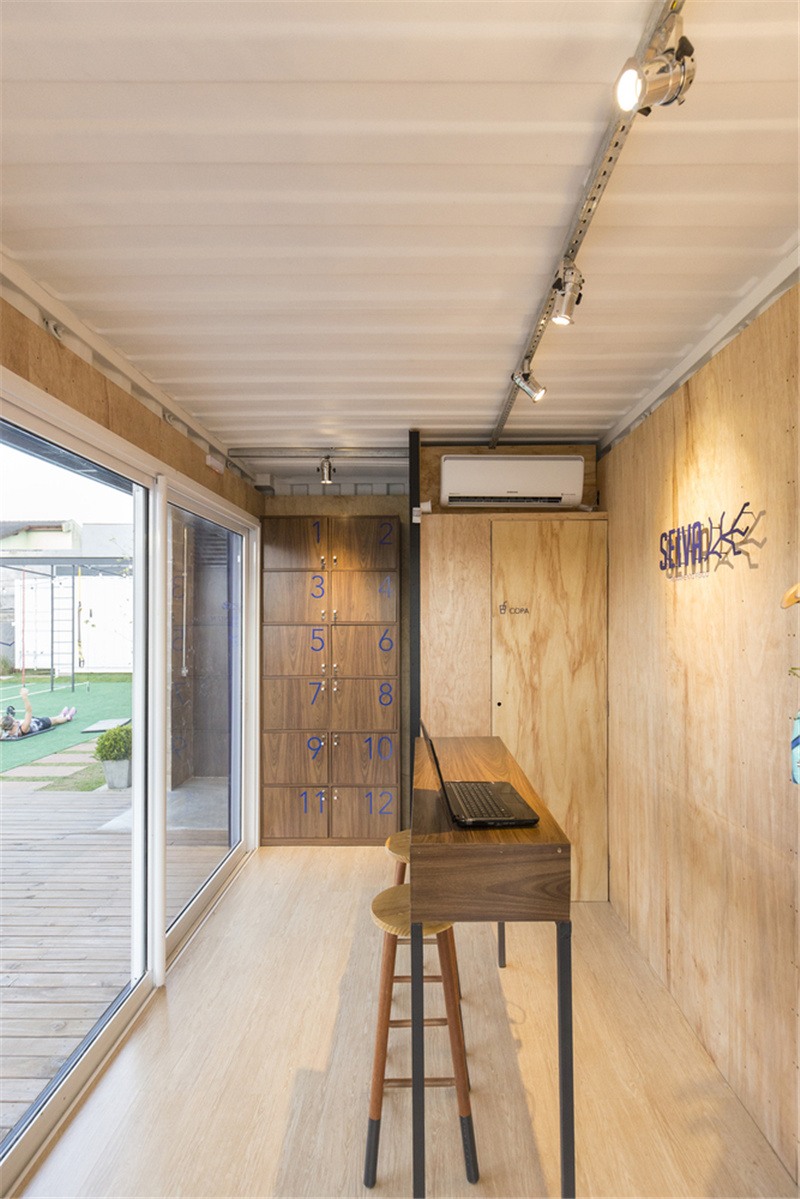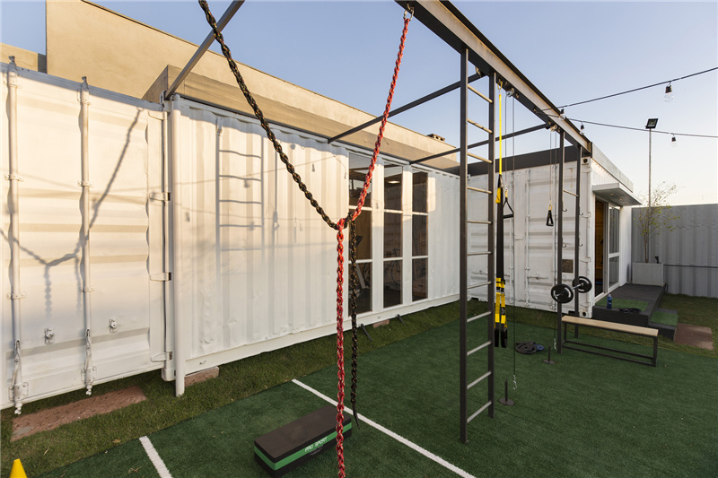 整座健身中心的內部區域包括帶有接待區的精品店、更衣室、室內培訓室和評估室;外部則包含了訓練區、休閑甲板、停車場和菜園等,面積達180平方米。所有的容器均沒有過多的附加裝飾,基本上就像移動普通容器一樣便捷,滿足隨搬隨走,落地即可使用的要求。