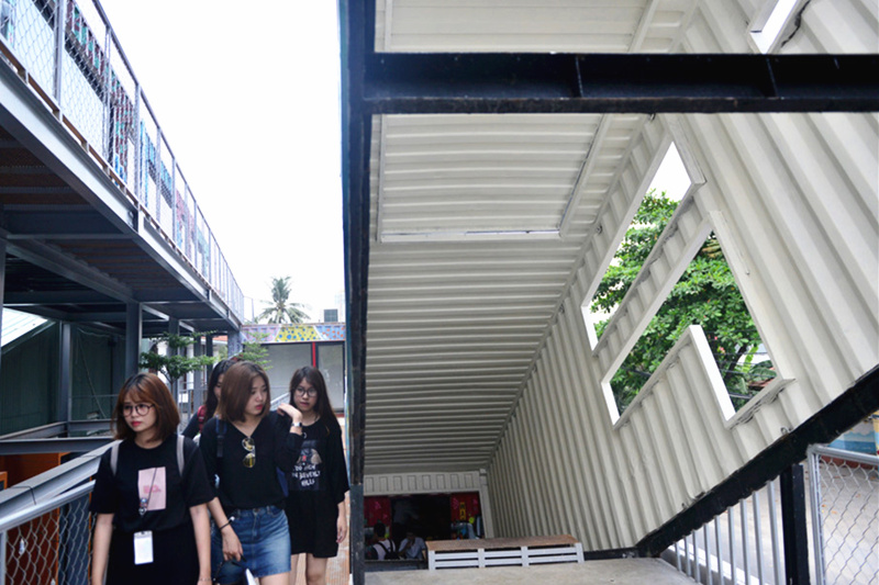 當(dāng)?shù)卦械乃囆g(shù)場(chǎng)地較少,對(duì)于年輕一代日漸增長(zhǎng)的需求已經(jīng)不能滿足。藝術(shù)展覽、藝術(shù)工作坊、畫廊等之前都需要在其他廣場(chǎng)場(chǎng)所借位置舉辦。而現(xiàn)在則不一樣了,有著出色集裝箱外觀和多功能藝術(shù)活動(dòng)空間,THE FACTORY 構(gòu)造了培養(yǎng)藝術(shù)思維、藝術(shù)學(xué)習(xí)的地方。