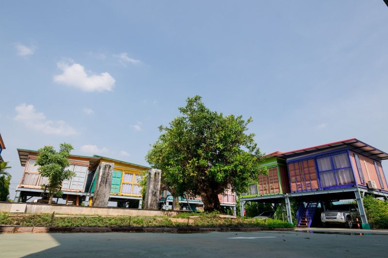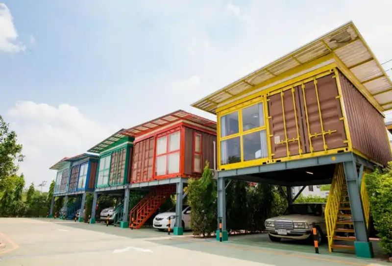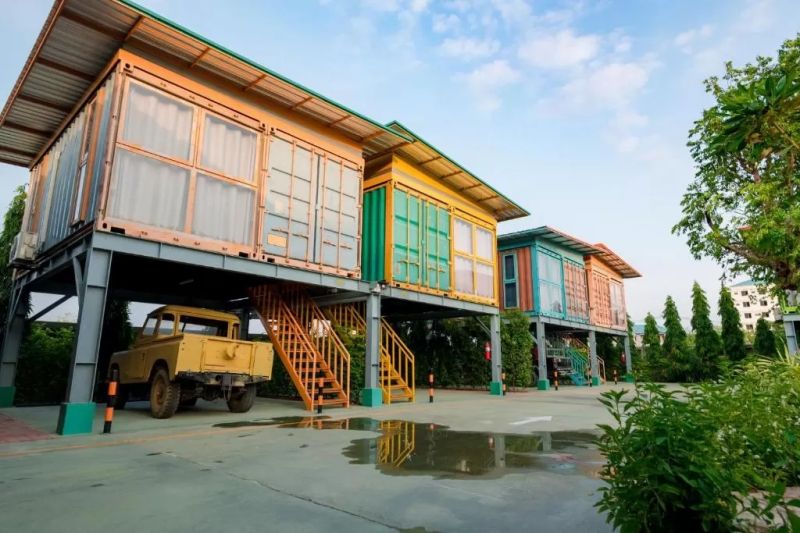 泰國作為一個熱門的東南亞旅游景點國家,有著許多特色的住宿酒店,為異國游客們帶來最具當?shù)靥厣木幼…h(huán)境。泰國地處熱帶,不僅盛產(chǎn)水果,連建筑都是彩色的……DoTH Hotel 酒店的布局以庭院式為主,多棟由集裝箱改造而成的建筑圍繞在中心庭院旁。庭院建設(shè)著流動的水池,并在角落種滿了各種綠植。