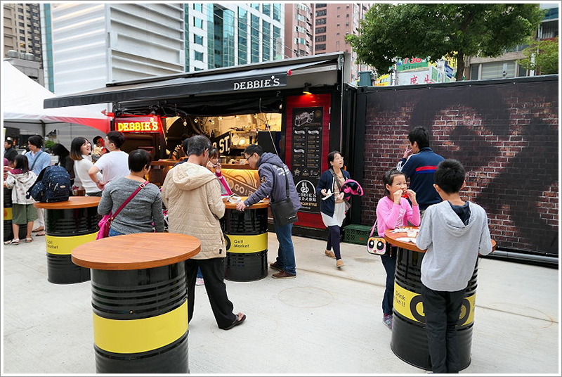 到了文青主題區,畫風就轉變成異國料理餐廳的天下,包括美式紐約布魯克林、歐洲地中海及法式典雅風等等。大大的市集名字被噴漆在商鋪頂上的集裝箱壁,線條搭配成北歐的樣子。主題區中心還鋪設了一塊人造草皮,搭配大陽傘和戶外用餐區,讓人有種在野餐的感覺。