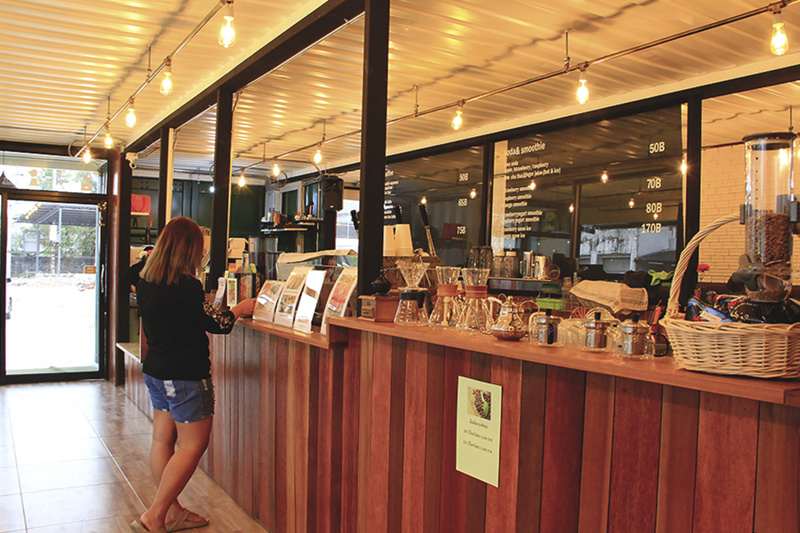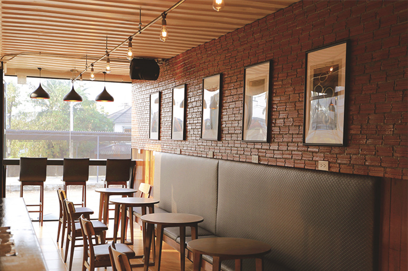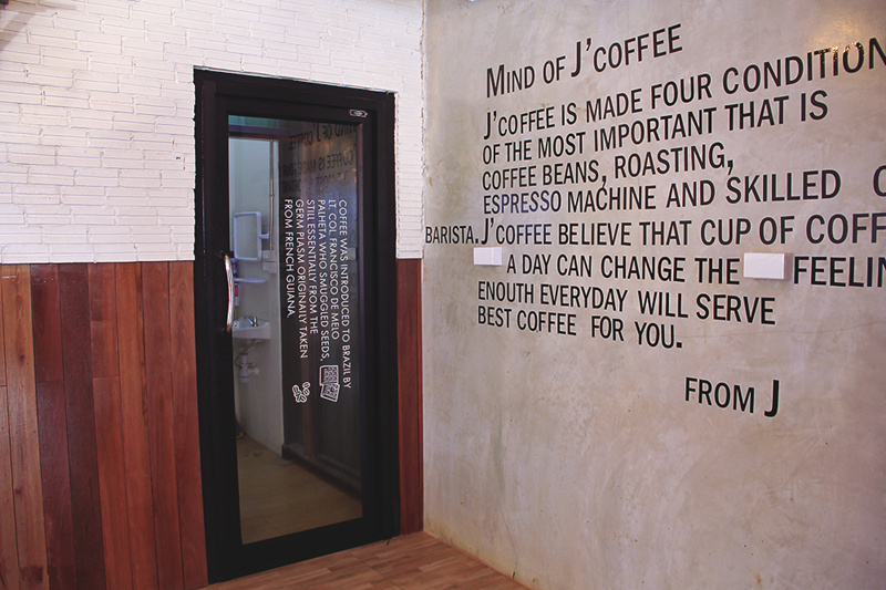 J’COFFEE內(nèi)部走簡單干練路線,一層均為落地玻璃窗邊高腳座位。