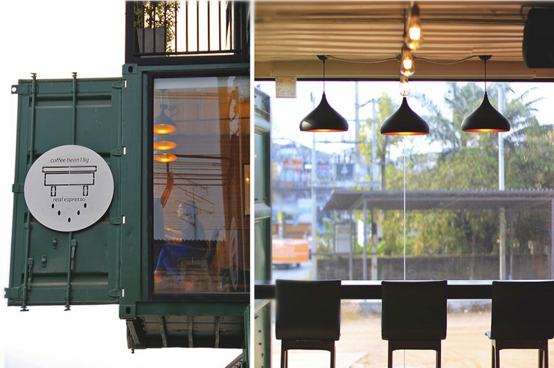 軍綠色咖啡小館,J’COFFEE樓高三層,由多個集裝箱搭建造而成。從下而上,每層集裝箱數(shù)量減少,呈現(xiàn)金字塔式造型,個性凸顯,配合綠植環(huán)境,打造軍綠森林風(fēng)格。