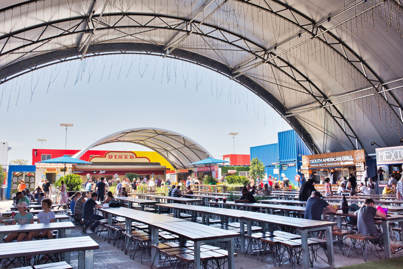 該商業(yè)街是一站式的美食、奇幻和有趣體驗的休閑場所,由于該地方原本就是布里斯班河上的集裝箱碼頭,因此在這里實現(xiàn)集裝箱建筑變得十分容易且合適。隨著餐飲和娛樂中心的入駐,該區(qū)域已經(jīng)成為了該市最具活力的場所之一。