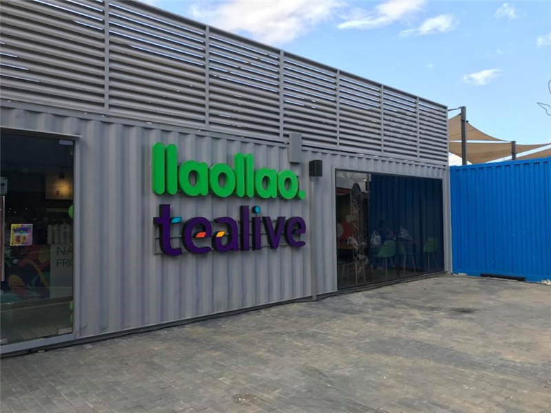 該集裝箱公園內建設了餐飲一條街,各種各樣的小餐館集成在聯排的集裝箱模塊中,并用不同的外殼顏色區分不同的店面。街道中間搭建了遮陽的頂棚,并放置了休閑的桌椅在走道上,可供游客們休息就餐。