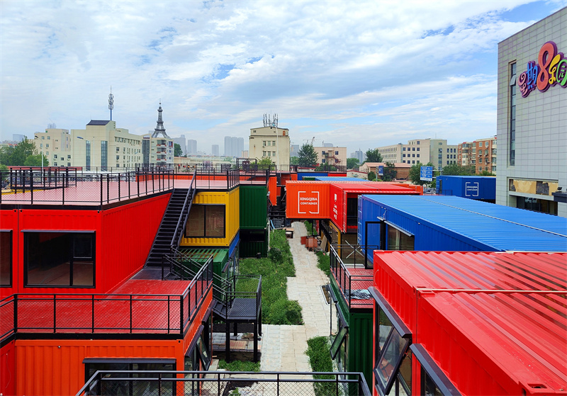 為什么選用集裝箱?集裝箱是對現有土地進行充滿活力改造的一個很好例子,它可移動的特點使得箱體的運用更為靈活,且集裝箱的使用壽命長,它能通過積極的再利用而不是大規模的拆除和重建來延續其在城市中所承擔的功能。同時,集裝箱建筑改造后新增的可租賃餐飲空間為客戶創造了更高的租金回報。