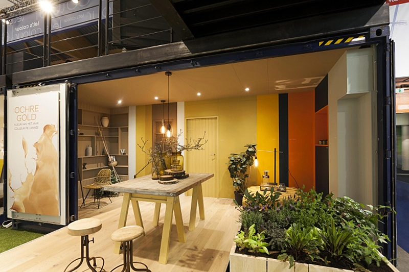 裝潢裝飾展Levis以集裝箱展廳的形式進(jìn)行參展,當(dāng)?shù)氐囊患抑耐苛瞎?,專注于提供時(shí)尚的色彩搭配方案、門窗涂裝系統(tǒng)、持久的散熱器防銹保護(hù)等。