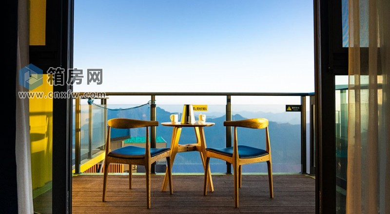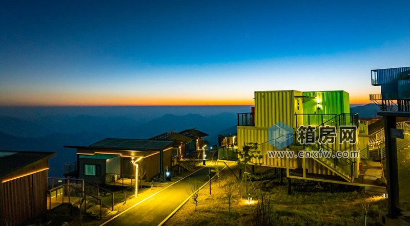 山頂的景色非常漂亮,空氣非常清新,早上可以看見日出,晚上可以看見漂亮的晚霞,環境不錯,集裝箱組合成的各種房間,小巧美觀,室內設施一應俱全。